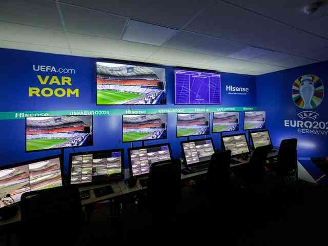 - VAR tại Euro 2024 sử dụng AI có khả năng xử lý dữ liệu nhanh và chính xác hơn. AI này kết hợp với 10 camera đặt khắp sân vận động, mỗi camera có thể quan sát 29 vị trí trên cơ thể mỗi cầu thủ.