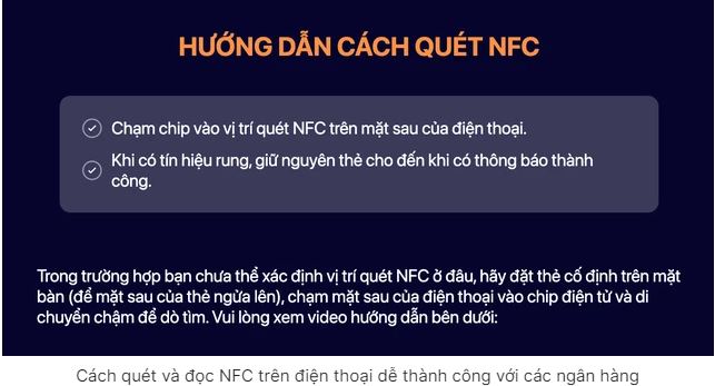 Việc đọc NFC cần thời gian để hệ thống tích đủ từ trường nhằm “đánh thức” con chip để lấy dữ liệu. Do đó, người dùng sau khi đã xác định được vị trí đầu đọc cần đưa CCCD vào đúng nơi và giữ nguyên cho tới khi có tín hiệu rung từ điện thoại, tránh thao tác rà thẻ qua lại để quy trình có thể thực hiện thành công.