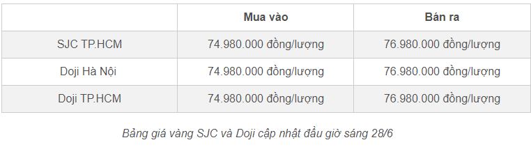 Tại Việt Nam, giá vàng miếng SJC do các ngân hàng nhà nước quản lý vẫn duy trì ở mức 76,98 triệu đồng/lượng, không có biến động so với những phiên giao dịch trước đó. Tuy nhiên, giá vàng nhẫn đã có sự điều chỉnh mạnh mẽ, đặc biệt là đối với các thương hiệu như SJC và Doji, với mức tăng từ 100-200 nghìn đồng/lượng.