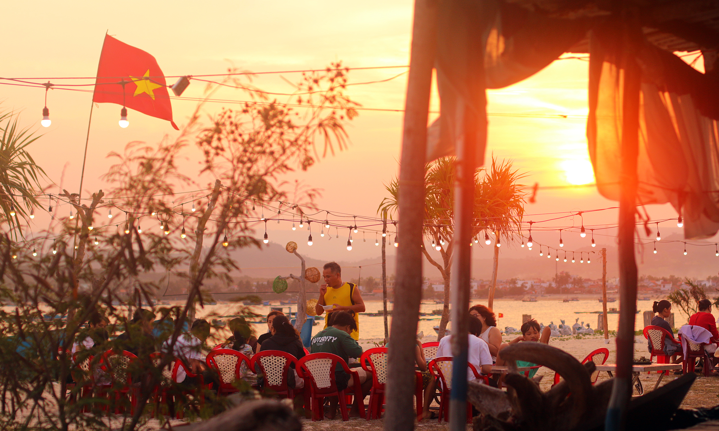 Đêm xuống, khi ánh đèn từ các lều trại bắt đầu sáng lên, không khí trên đảo trở nên ấm cúng và thân thiện. Du khách có thể cùng nhau ngồi quanh bếp lửa, thưởng thức hải sản nướng, kể chuyện và ngắm sao. Đặc biệt, vào những đêm trời trong, bầu trời trên đảo trở nên lung linh với hàng ngàn ngôi sao, tạo nên một khung cảnh lãng mạn và huyền ảo.