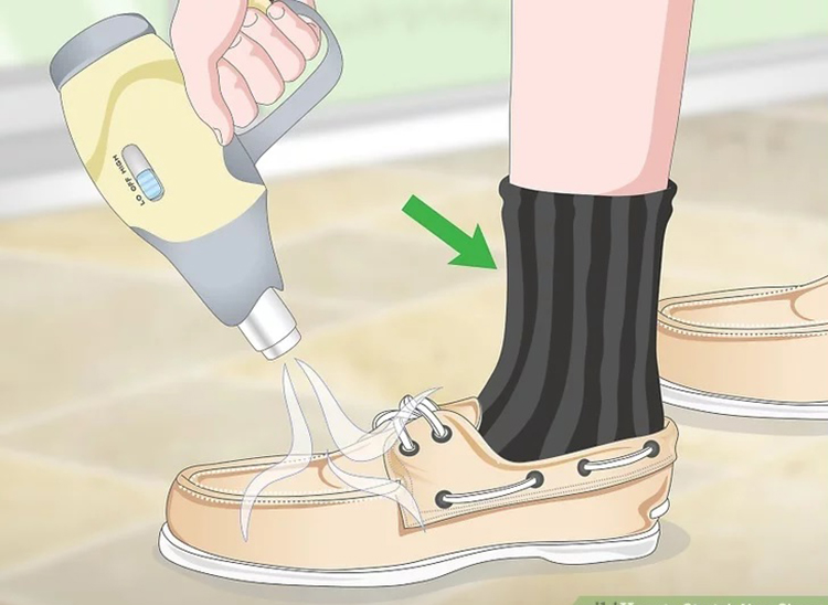 Mang tất và làm nóng giày bằng máy sấy tóc