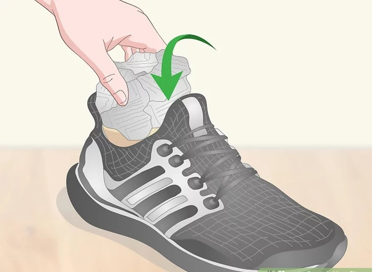 Cuộn giấy báo ẩm vào và nhét vào giày. Khi giấy khô lại, nó sẽ nở ra và giúp giày giãn rộng.