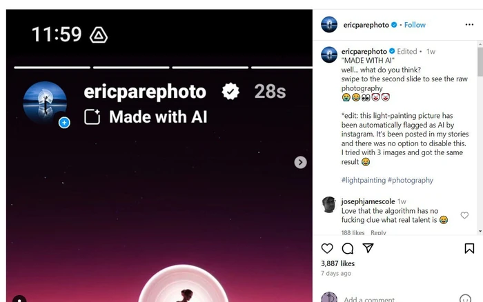 Một ví dụ điển hình là bức ảnh của nhiếp ảnh gia Pete Souza. Bức ảnh của ông bị dán nhãn “Made with AI” trên Instagram, mặc dù nó chỉ được chỉnh sửa nhẹ. Điều này đã gây ra sự không hài lòng từ phía các nhiếp ảnh gia và người dùng khác.