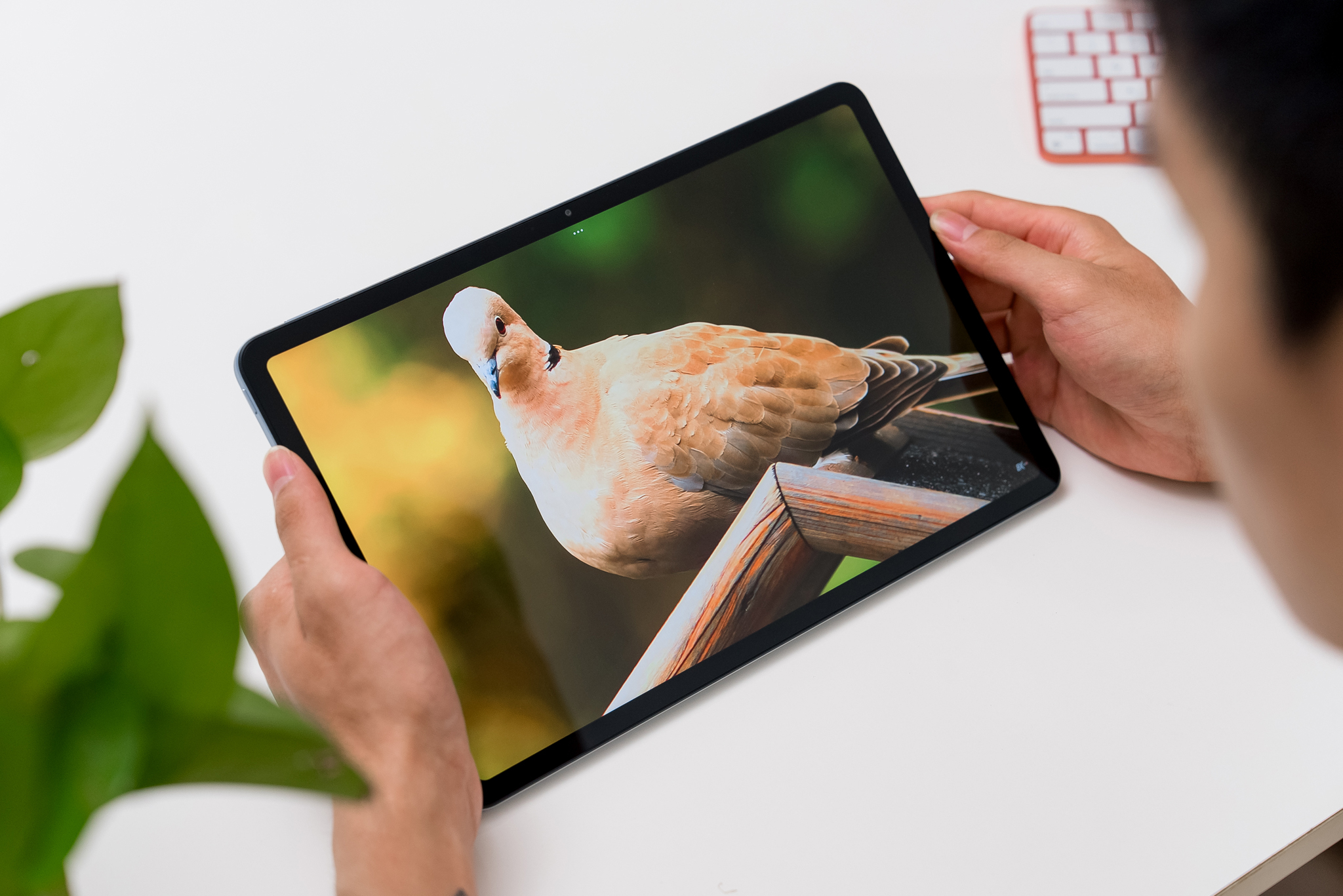 Redmi Pad Pro được thiết kế với vẻ ngoài sang trọng và chắc chắn. Toàn bộ phần vỏ máy làm từ nhôm, độ mỏng 7,5 mm và trọng lượng 571 gram, tạo cảm giác cầm thoải mái. Máy có ba tùy chọn màu sắc: xanh dương, xanh bạc hà và xám. Màn hình lớn 12,1 inch với độ phân giải 1.600 x 2.560 pixel và tần số quét 120 Hz mang lại trải nghiệm hình ảnh mượt mà và sắc nét. Viền máy mỏng đều bốn cạnh, tuy nhiên, viền kính hơi nhô ra có thể gây cảm giác cấn khi cầm.