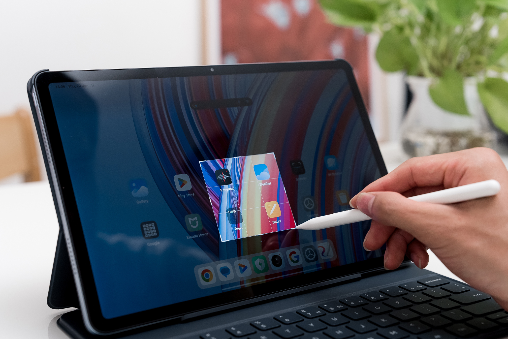 Redmi Pad Pro đi kèm nhiều phụ kiện như bàn phím và bút cảm ứng Redmi Smart Pen. Bút cảm ứng có thể nhận 4.096 mức lực khác nhau, cho cảm giác viết tự nhiên dù không có ứng dụng ghi chú đặc biệt. Bàn phím kết nối qua Bluetooth, không có đèn nền nhưng có hành trình phím tốt, gõ êm và chính xác.