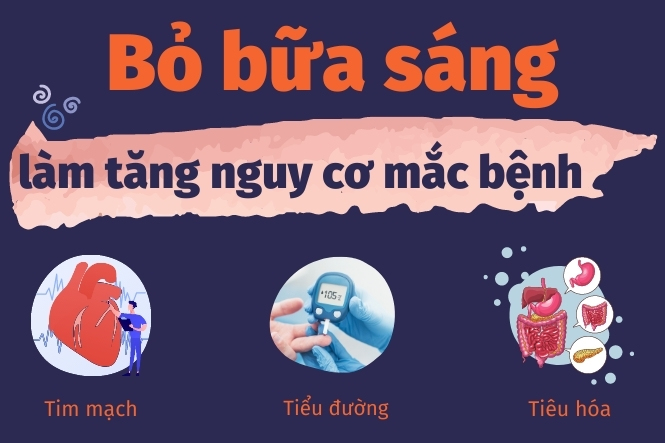 Bỏ bữa sáng có thể làm tăng nguy cơ mắc các vấn đề tim mạch do sự thay đổi đột ngột trong mức đường huyết và huyết áp. Bữa sáng giúp cung cấp năng lượng, duy trì mức đường huyết ổn định và cung cấp đủ dưỡng chất cần thiết.